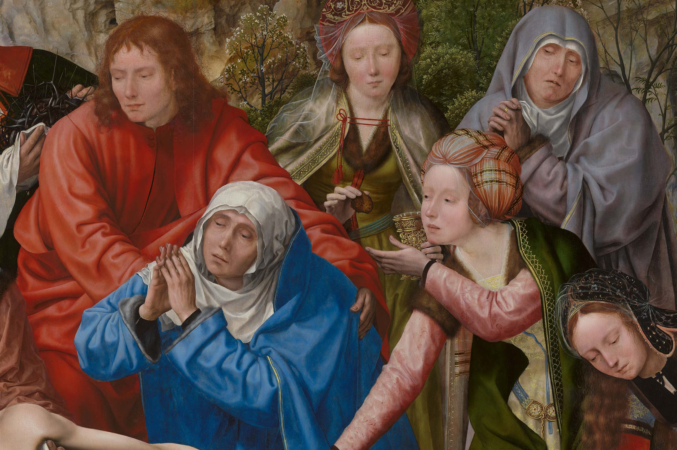 Sources concerning restoration and conservation treatments of the Altarpiece of the Joiners’ Guild are sparse before the middle of the nineteenth century, when it had entered the collections of the Antwerp museum. Between that moment and the middle of the seventeenth century, when Massijs’s first biographer, the painter Alexander van Fornenberg, described its poor condition, it must have undergone at least one overcleaning. This explains why some of the faces, notably those of the three Marys and of John the Evangelist in the central panel, have lost their subtle modelling. The flesh modelling and some draperies, however, still attest fully to the master’s superb mastery of the technique of translucent oil paint that he inherited from his fifteenth-century predecessors, but managed to apply with a remarkable economy of means. Other draperies make full use of opaque details in lead-tin yellow.
