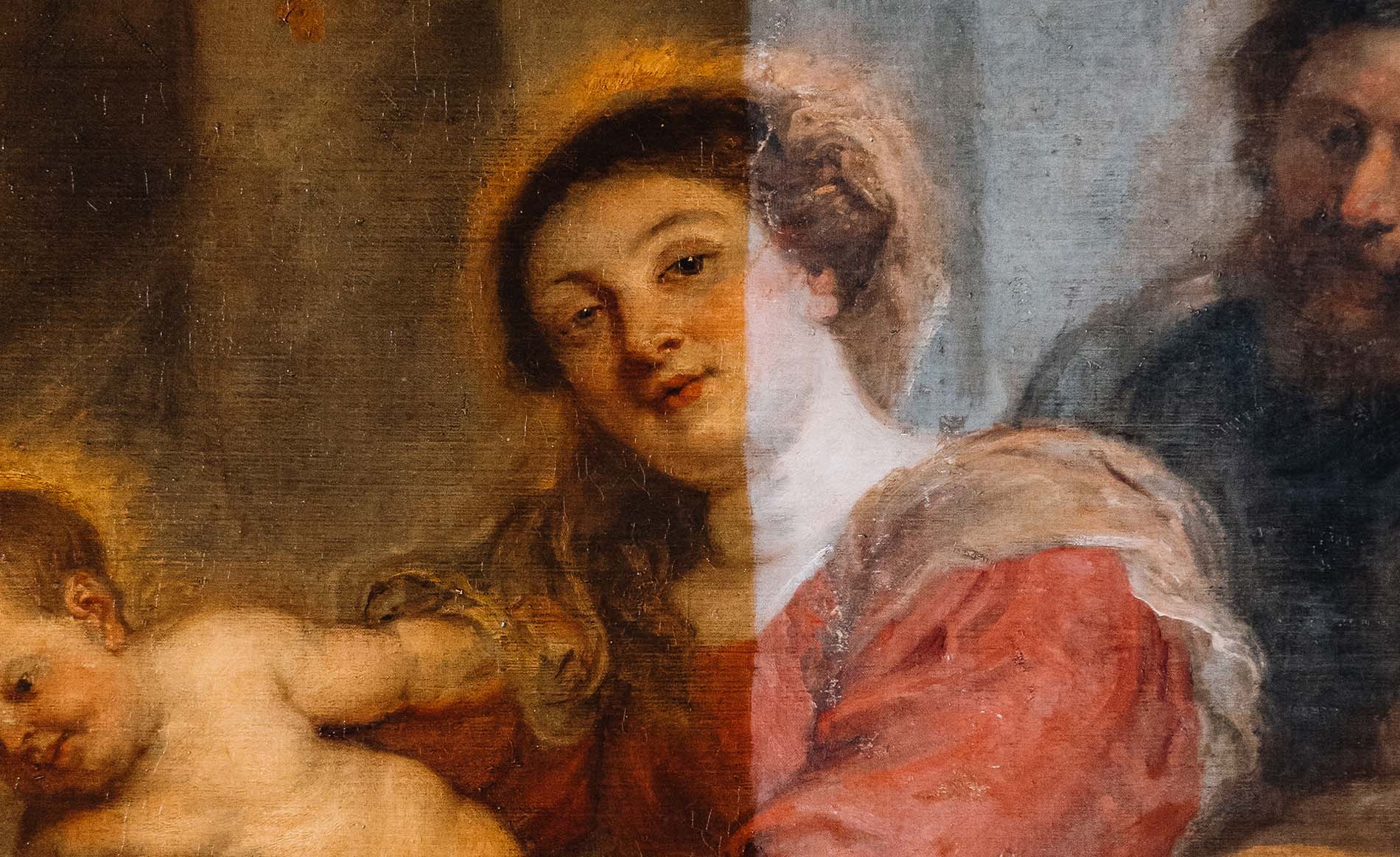 Because the Enthroned Madonna was too large to be moved to a conservation studio, the KMSKA decided to carry out the restoration on site in the Rubens Gallery allowing visitors to follow the full restoration process. The project extends beyond a simple cleaning of the altarpieces; it also involves extensive research into Rubens’s creative process. An international team of restorers, researchers, and Rubens experts meticulously examined every detail of the Enthroned Madonna, and the first phase of this work has already yielded significant new insights.