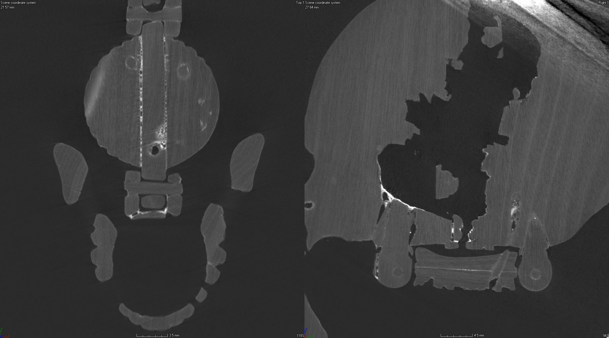 - Fig. 2. Micro CT scans of figure 1showing construction of clasp (left) and cross section of skull (right). The Thomson Collection © Art Gallery of Ontario. Scans courtesy of Sustainable Archaeology at Western University.