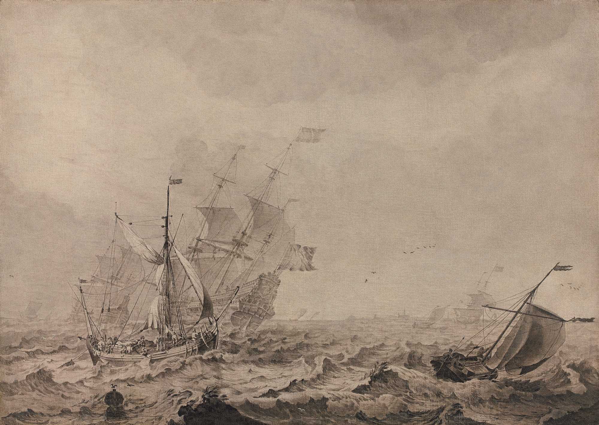 The presentation curated by Dr. Katja Kleinert focuses on the exciting historical background of the painting as well as the life of the artist, who is still largely unknown today. Using a number of examples, the exhibition outlines the context of Dutch marine painting, sheds light on the special features of the Hoorn School of Painting and explains the painting technique and restoration of the Berlin painting. In addition to works from the Gemäldegalerie, the Kupferstichkabinett and the Münzkabinett, two pen paintings from the Westfries Museum in Hoorn and the large-format depiction of the Brandenburg fleet by Lieve Verschuier from the Stiftung Preußische Schlösser und Gärten will be shown.
