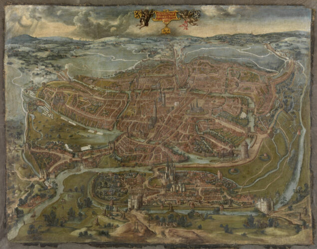 During the excursion, we will explore the permanent exhibition on the city’s history, The Story of Ghent. Highlights in this chronological display include the thirteenth-century tomb of Viscount Hugo II of Ghent, monumental brasses, the fifteenth-century battle standard of the city’s militia, silver messenger badges, a series of mark plates of the Ghent goldsmiths, the oldest painted aerial view of Ghent, and processional torches of the craft guilds dating from the seventeenth and eighteenth centuries.