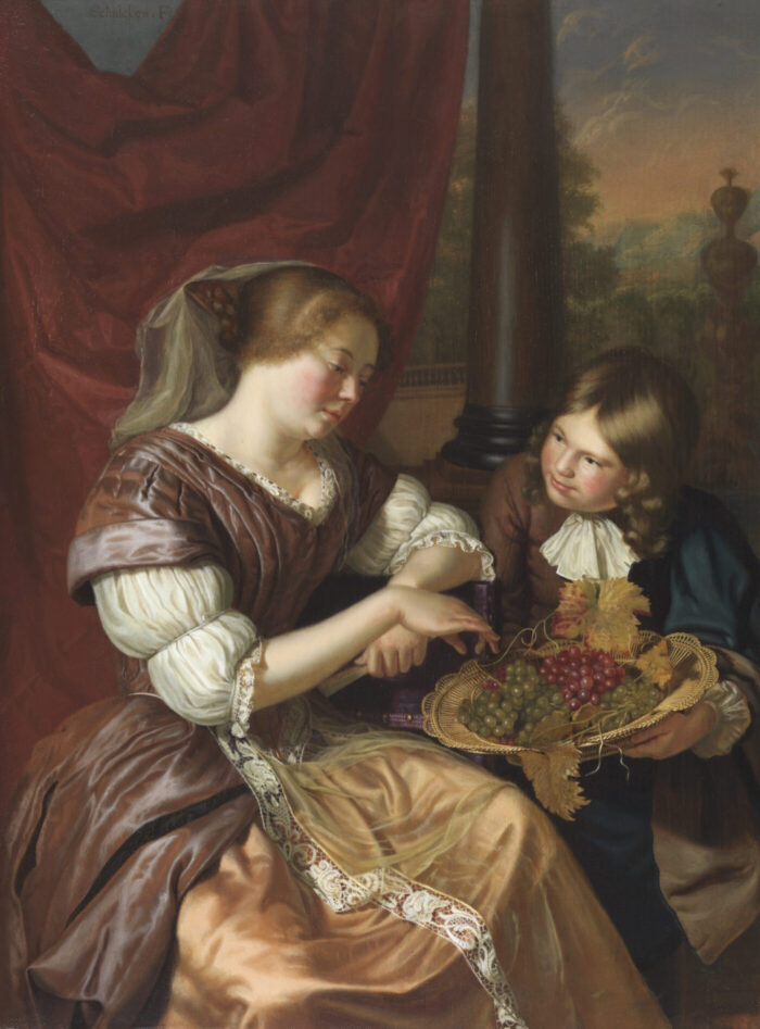 - Maria Schalken (1645-1700), Boy offering grapes to a woman, ca. 1675-85, New York, The Leiden Collection