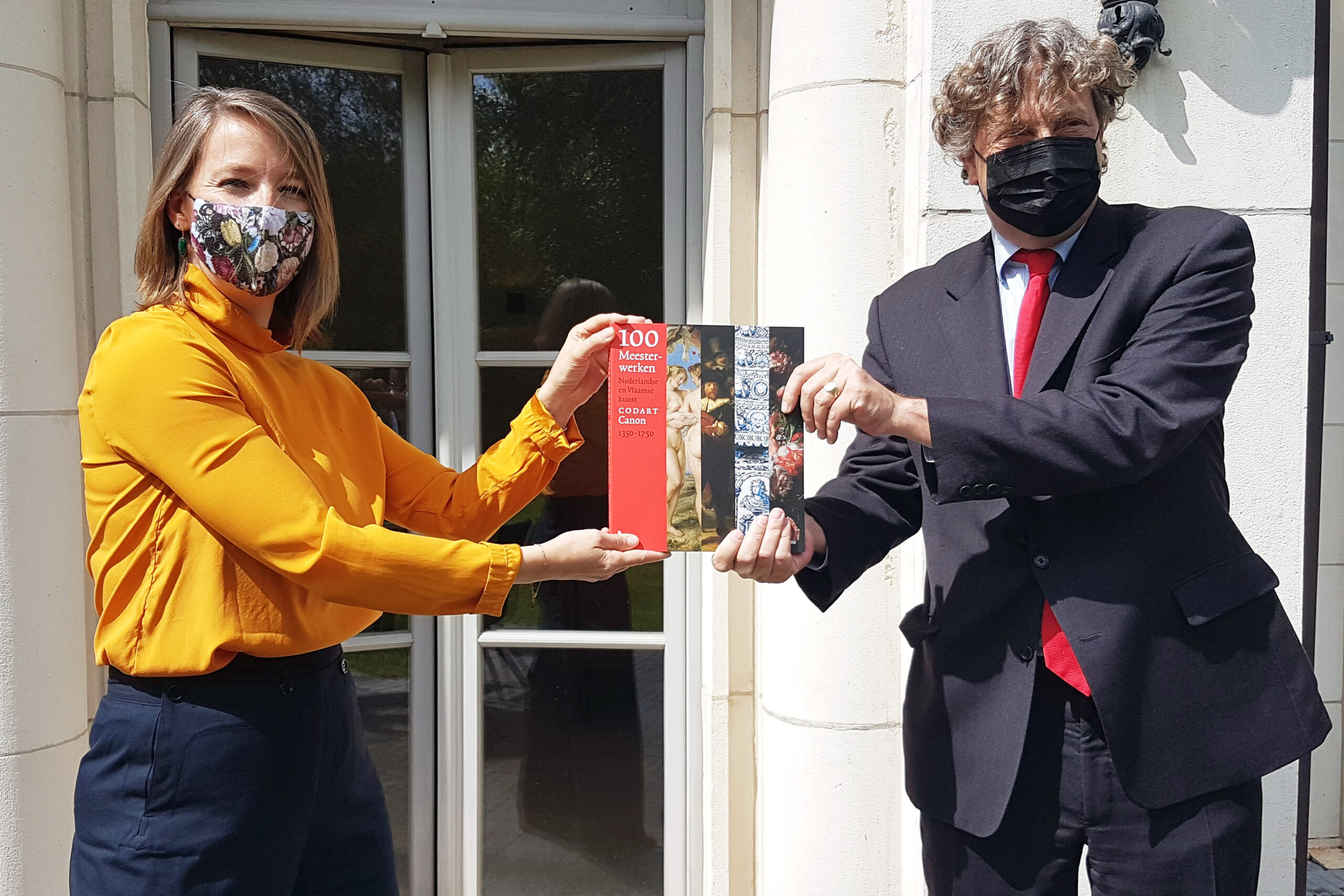 On Tuesday 25 May, CODART director Maartje Beekman presented the CODART Canon publication 100 Masterpieces of Dutch and Flemish Art to Pieter Jan Kleiweg de Zwaan, the Netherlands Ambassador to Belgium and to Joachim Pohlmann, Secretary of Culture to the Flemish Government. During an intimate gathering at the Ambassador’s residence in Brussels we proudly presented the Canon project, which includes the publication and a comprehensive website, and celebrates the richness of our shared culture.