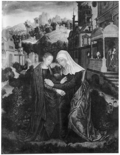 The Visitation (see image) was last recorded in 1951 in the collection of Count Bobrinsky in London. This work is signed OPUS PETRI NICOLAI and measures 122 by 94 cm. Max J. Friedländer attributed the painting, according to a note on the backside of a picture at the RKD, already to Pieter I Claeissens.